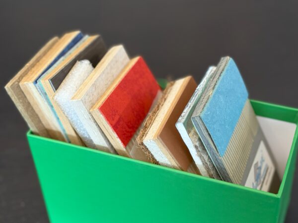 Een box vol met allerlei soorten ondervloeren van Unifloor. Samen bespreken welke ondervloer het beste bij uw woonwensen past.